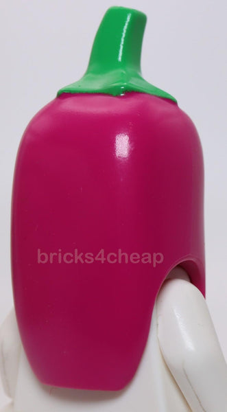 The Lego Headgear Head Cover Costume Chili Pepper with Bright Green Stem Pattern is a unique minifigure headgear set from the LEGO brand. This Magenta plastic head cover features a Chili Pepper Guy design with a bright green stem pattern, fitting the interests of those into cars, space, buildings, STEM, vehicles, arts and crafts, travel, animals, and fantasy themes. Released in 2025, this set is suitable for ages 5 and up, and is part of the Town LEGO subtheme. It is a safe material and comes with one piece for creative building fun.