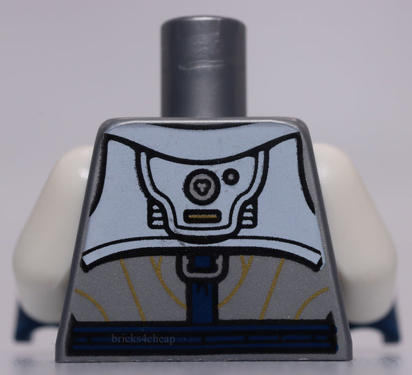 The product is a LEGO minifigure torso with a spacesuit design, featuring gold lines and the classic space logo. This particular set, part of the LEGO Space theme, comes with one piece of flat silver plastic material, suitable for ages 5 and up. It is part of the Cyber Drone set released in 2020 and is designed for space exploration. Perfect for fans of STEM, vehicles, and fantasy themes, this LEGO piece is a great addition to any collection of building toys.